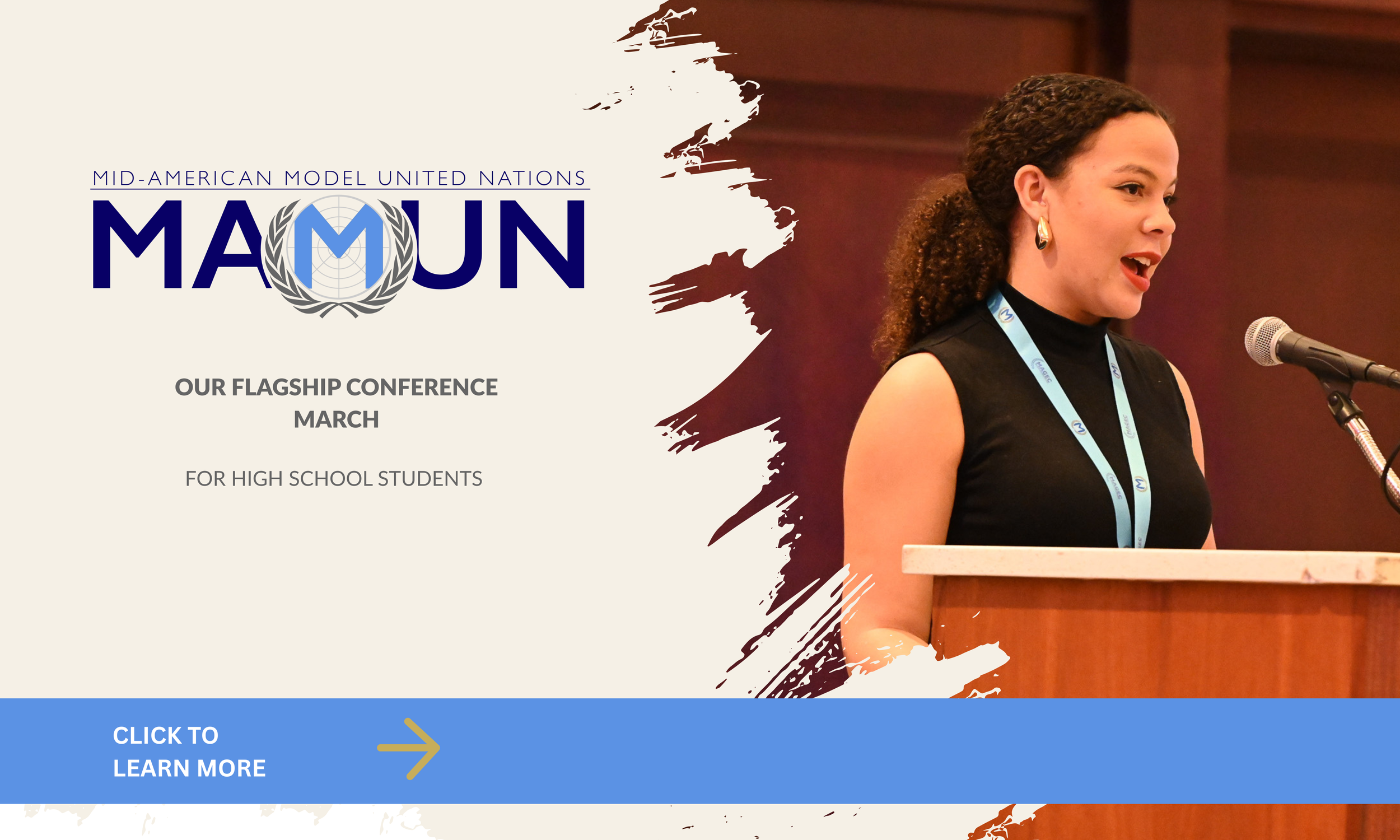 MAMUN is our flagship, three-and-a-half-day model United Nations conference held each spring. Featuring five committees of the General Assembly, a conference-long Security Council, and ad hoc crisis committees, MAMUN is catered to delegates of all experience levels and areas of interest.